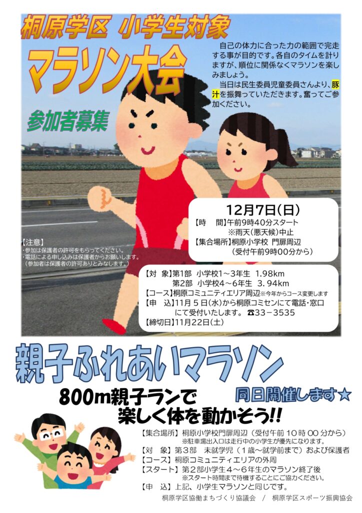 ●桐原学区 小学生対象 マラソン大会参加者募集(スポーツ振興協会)