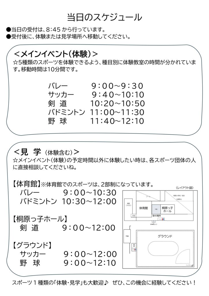 ●桐原学区スポーツ少年団によるスポーツ体験教室(スポーツ振興協会)